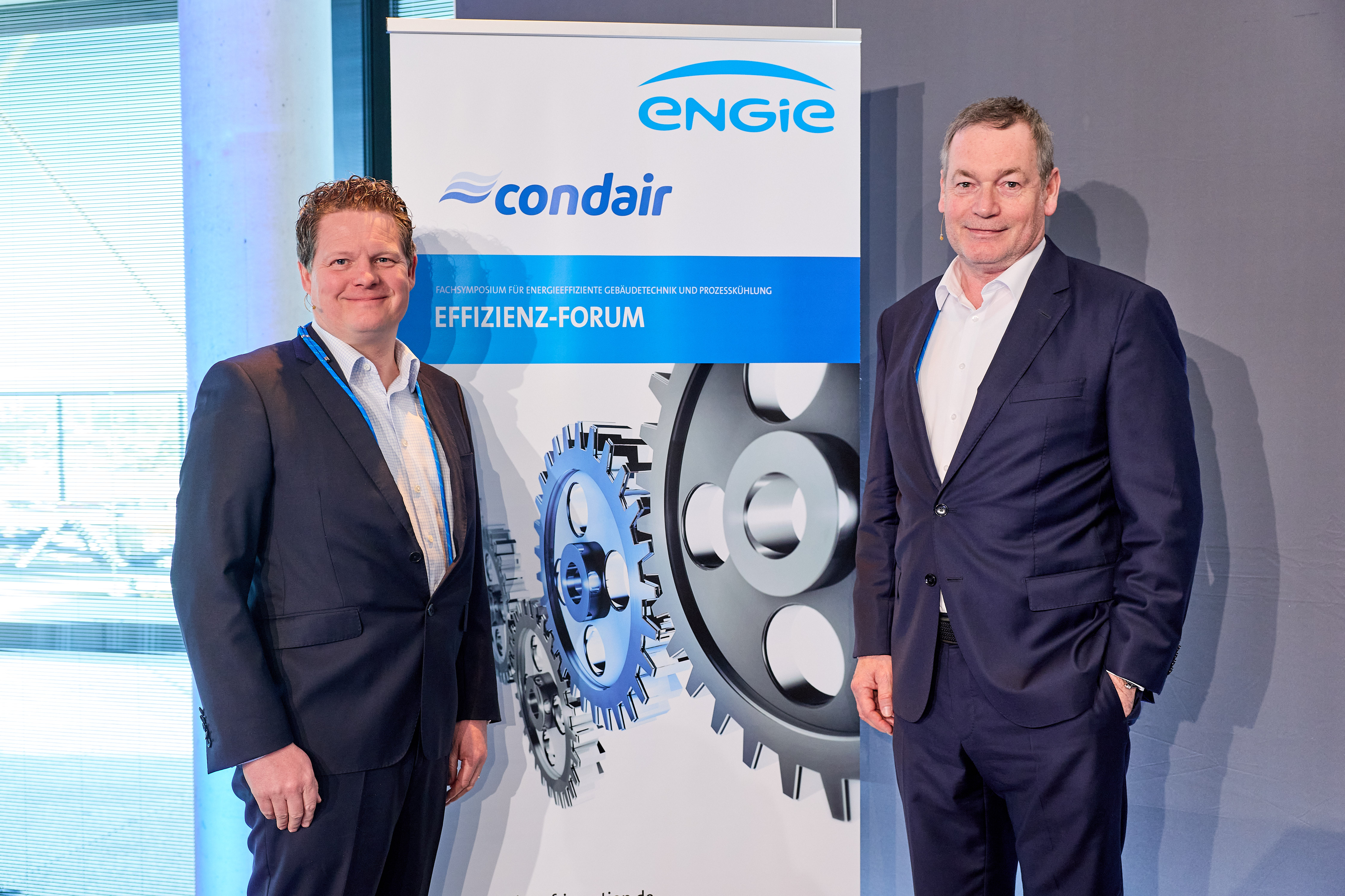 Bildunterschrift 1: Gastgeber des Effizienz-Forums 2026: Jochen Hornung, Geschäftsführer der ENGIE Refrigeration (r.), und Philipp von Heimendahl, Geschäftsführer von Condair, wählten mit dem EUREF-Campus Berlin-Schöneberg einen Standort, der die Klimaziele von 2045 bereits heute erfüllt.