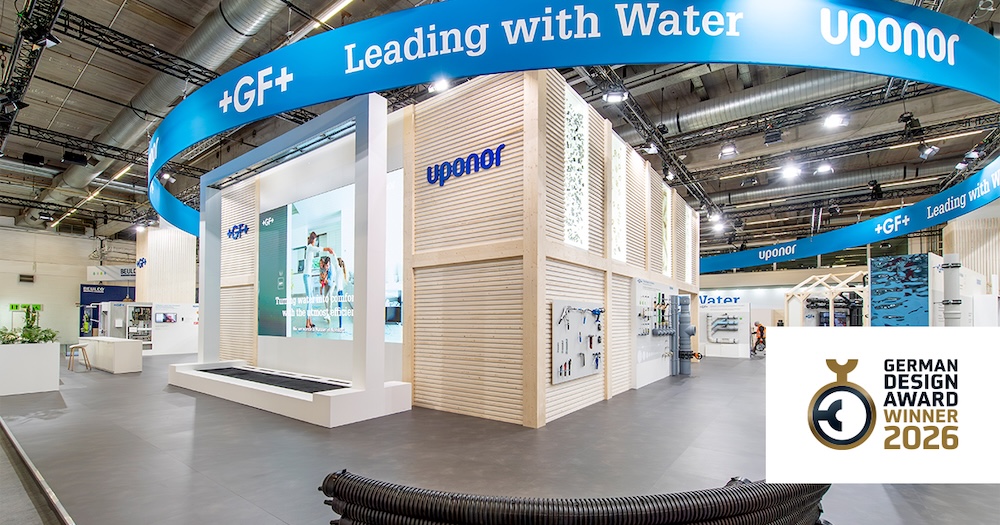 Zusätzlich zur Produktauszeichnung erhielt GF einen weiteren German Design Award für seinen Messestand auf der ISH 2025, der gemeinsam mit der M+W Gruppe, der Brands and Emotions GmbH sowie dem Architekten Axel Loritz von imageneering GmbH realisiert wurde. Die Auszeichnung unterstreicht den Anspruch des Unternehmens, Kundenorientierung in allen Bereichen zu leben, sowie energieeffiziente und bezahlbare Gebäude mit sauberem, sicherem Trinkwasser und komfortablen Räumen zu schaffen.